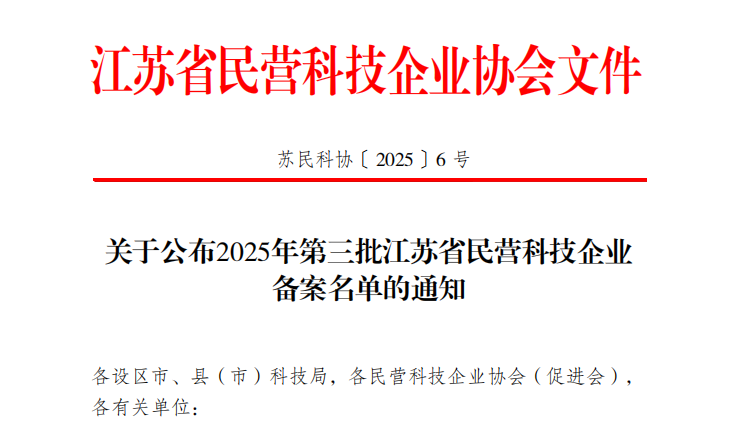 “江苏省民营科技企业”的认定,旨在通过引导与激励,推动民营科技企业加强技术创新,从而促进区域稳定发展。此次殊荣是对我司创新成果的肯定,同时也是未来发展的激励,我们将进一步提升创新能力,加强核心竞争力。